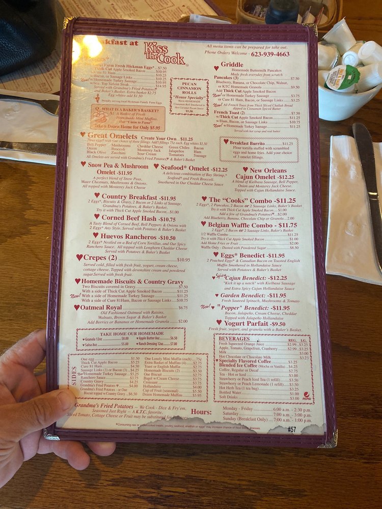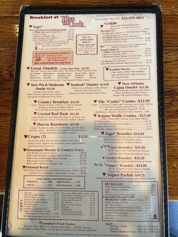 Welcome to Kiss the Cook Restaurant, your go-to destination for a delightful breakfast and brunch experience in Glendale, AZ. With a vibrant yet casual atmosphere, this restaurant is perfect for families, friends, and groups. The menu boasts a variety of favorites, starting with their Pecan Cinnamon Rolls, which are warm and drizzled in a decadent caramel pecan sauce—truly a house specialty not to be missed.
